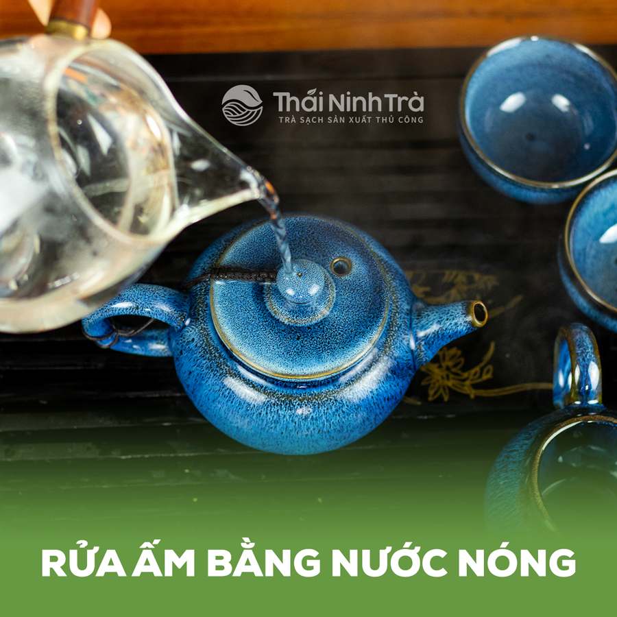 1. Rửa ấm bằng nước nóng