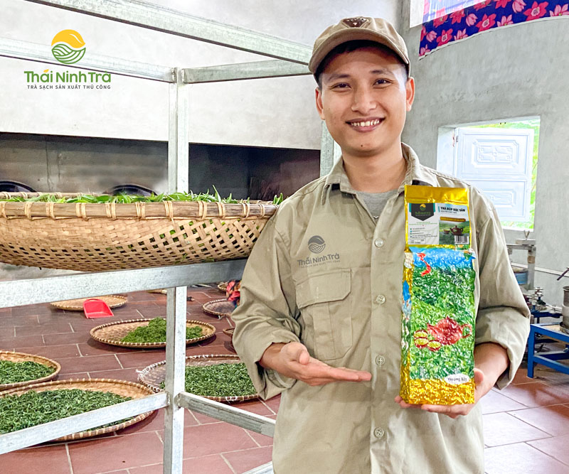 Tại Thái Ninh Trà, con người vẫn là yếu tố tiên quyết làm ra mẻ trà ngon. Với phương châm, tôn chỉ: “Trà sạch sản xuất thủ công”, Thái Ninh Trà luôn trung thành đi theo con đường mình đã vạch. Các nghệ nhân làm trà tham gia vào tất cả các công đoạn để cho ra cánh trà khô. Ngay sau khi hái về, nghệ nhân lựa búp chè lại một lần cho đạt chuẩn, hong chè và kiểm tra thường xuyên rồi vò, sấy… đủ các bước. Lò sấy của Thái Ninh Trà đốt bằng củi, nghệ nhân Thái Ninh Trà phải giữ nhiệt độ ổn định, trông chừng bếp đun luôn luôn.