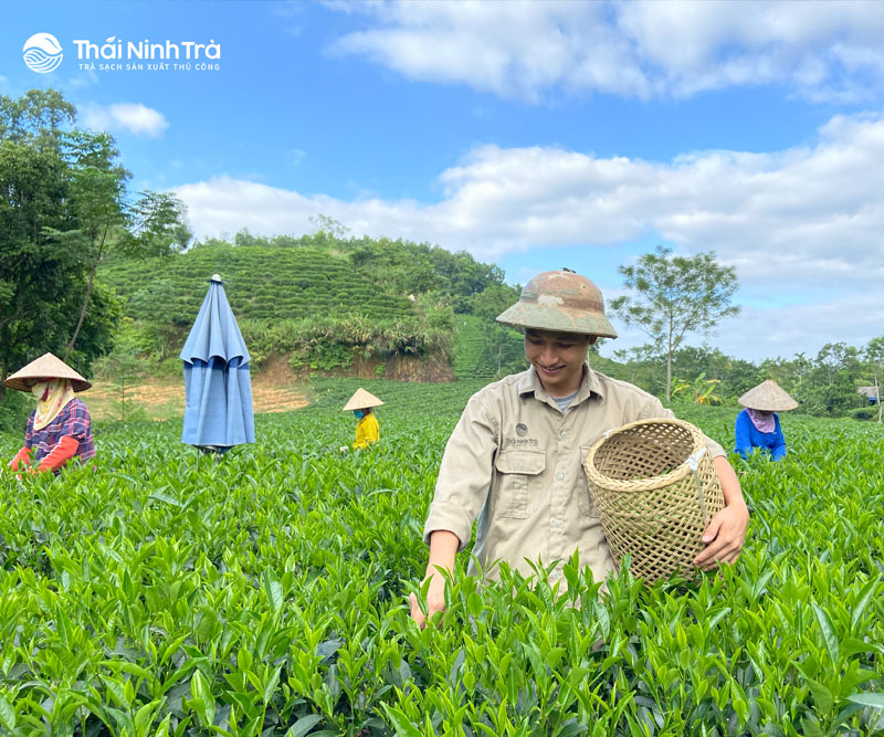 Những cây chè tại Thái Ninh Trà được chăm sóc như người con, người bạn, người thân của người nông dân, tỉ mỉ và yêu thương như vậy. Cây được bón phân hữu cơ ủ hoai mục, được cắt dọn cỏ thủ công, được tưới nước từ nguồn nước sạch. Từng búp chè được thu hái vào sáng sớm, khi búp chè còn ngủ mơ màng lơ đãng với sương đêm. Đó là thời điểm tuy người hái chè sẽ phải vất vả hơn nhưng bù lại, búp chè giữ được nhiều dưỡng chất, khi ra thành phẩm, búp có nhiều chất hơn, màu nước xanh hơn, cho hương thơm vị đượm hơn.