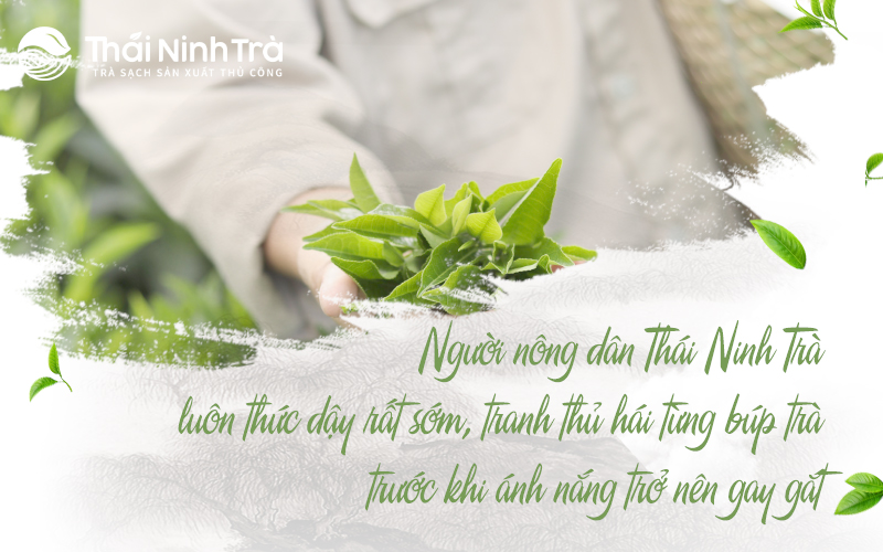 Như một thói quen không thể quên, người nông dân Thái Ninh Trà luôn thức dậy rất sớm, tranh thủ hái từng búp trà trước khi ánh nắng trở nên gay gắt.